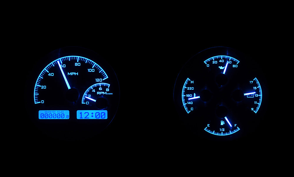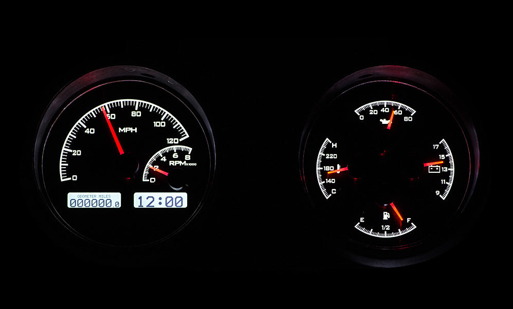 Dakota Digital gauges is known to be one of the best aftermarket gauges available. The VHX Series is an analog instruments that fits 1966-67 Oldsmoblie Cutlass. These gauges come with fully lit needles and backlit face with 6 gauges speedometer, tachometer, oil pressure, water temperature, gas level, and volt. Comes in 3 background colors silver, black, and carbon fiber, and comes in 3 light up colors red, blue, and white(carbon fiber with white lighting not available). The dash message display show odometer, dual trip meter ans also does performance meters like, 0-60 MPH timer, 1/4 mile time, 1/4 mile end speed, high speed recall, high RPM recall. Also includes water temperature sensor, oil pressure sensor, speed sensor, and control box. Instrument gauges will fit in OEM bezels but NOT INCLUDED. *Some modification is required to the inside of the stock instrument housing, but is clearly outlined in the included manual. FREE Shipping within 48 Contiguous U.S. states. Volume discounts does not apply.