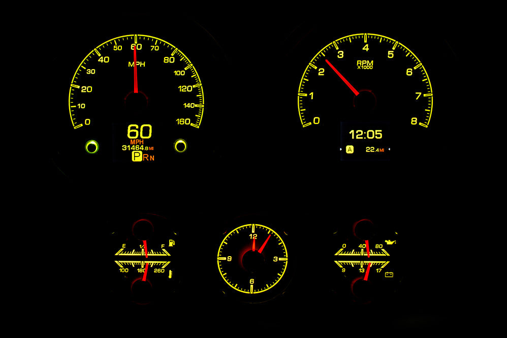 Upgrade your 1967 Camaro with console gauges with Dakota Digital HDX gauges. Available in black or white face, these gauges offer customizable backlighting through a convenient app. Step up your interior game and enhance your driving experience with the latest technology and a sleek design. Free Shipping US 48 States. Fits original style bezel, but NOT included.
