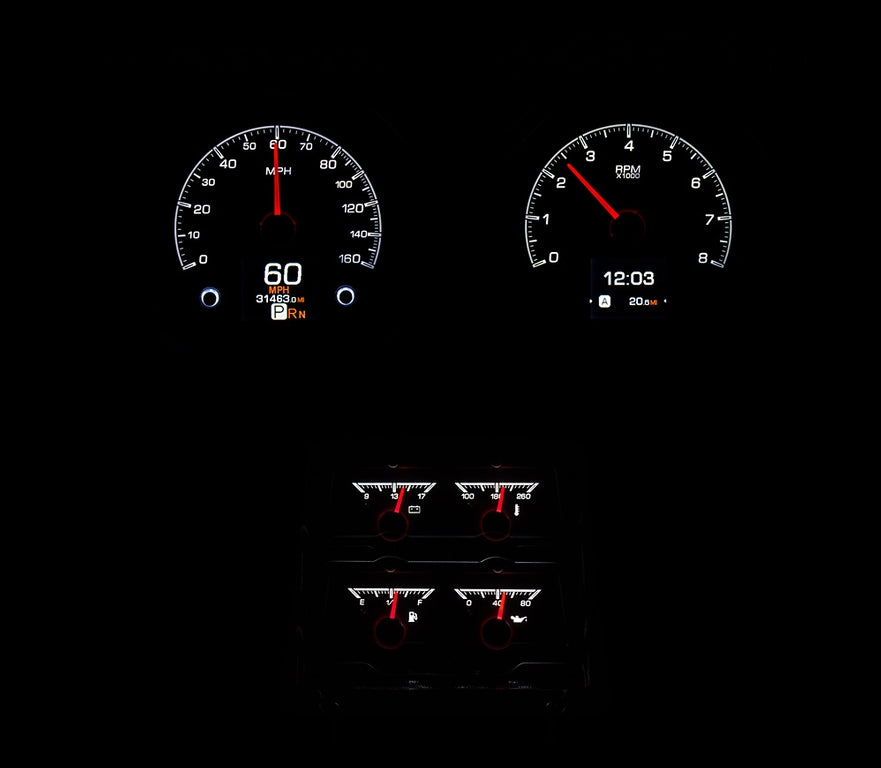Upgrade your 1968 Camaro with console gauges with Dakota Digital HDX gauges. Available in black or white face, these gauges offer customizable backlighting through a convenient app. Step up your interior game and enhance your driving experience with the latest technology and a sleek design. Free Shipping US 48 States. Fits original style bezel, but NOT included.