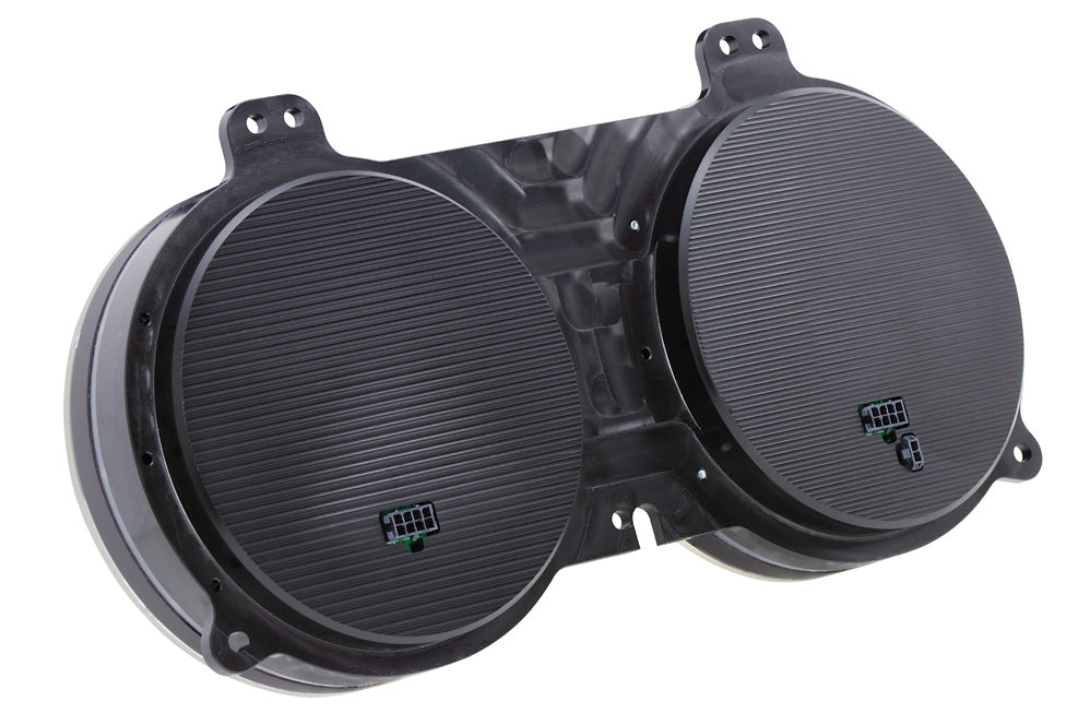 Dakota Digital RTX instrument cluster specifically designed for a 1968 Camaro with console gauges. It features analog and digital displays with integrated LCD technology, providing readouts for temperature, speed, fuel level, oil pressure, and engine RPM. The cluster also includes a clock and is illuminated for easy visibility allowing you to change the light up color to your liking through a mobile app. This vintage performance part combines classic styling with modern functionality, making it a valuable upgrade for the interior of 1968 Camaro. Gauges will fit in OEM bezel but not included.