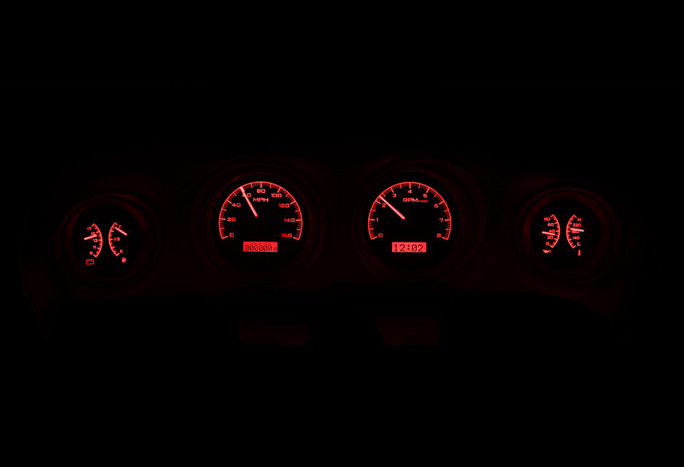 Dakota Digital gauges is known to be one of the best aftermarket gauges available. The VHX Series is an analog instruments that fits 1969-70 Mustang. These gauges come with fully lit needles and backlit face with 6 gauges speedometer, tachometer, oil pressure, water temperature, gas level, and volt. Comes in 3 background colors silver, black, and carbon fiber, and comes in 3 light up colors red, blue, and white(carbon fiber with white lighting not available). The dash message display show odometer, dual trip meter ans also does performance meters like, 0-60 MPH timer, 1/4 mile time, 1/4 mile end speed, high speed recall, high RPM recall. Also includes water temperature sensor, oil pressure sensor, speed sensor, and control box. Instrument gauges will fit in OEM bezels but NOT INCLUDED. FREE Shipping within 48 Contiguous U.S. states. Volume discounts does not apply.