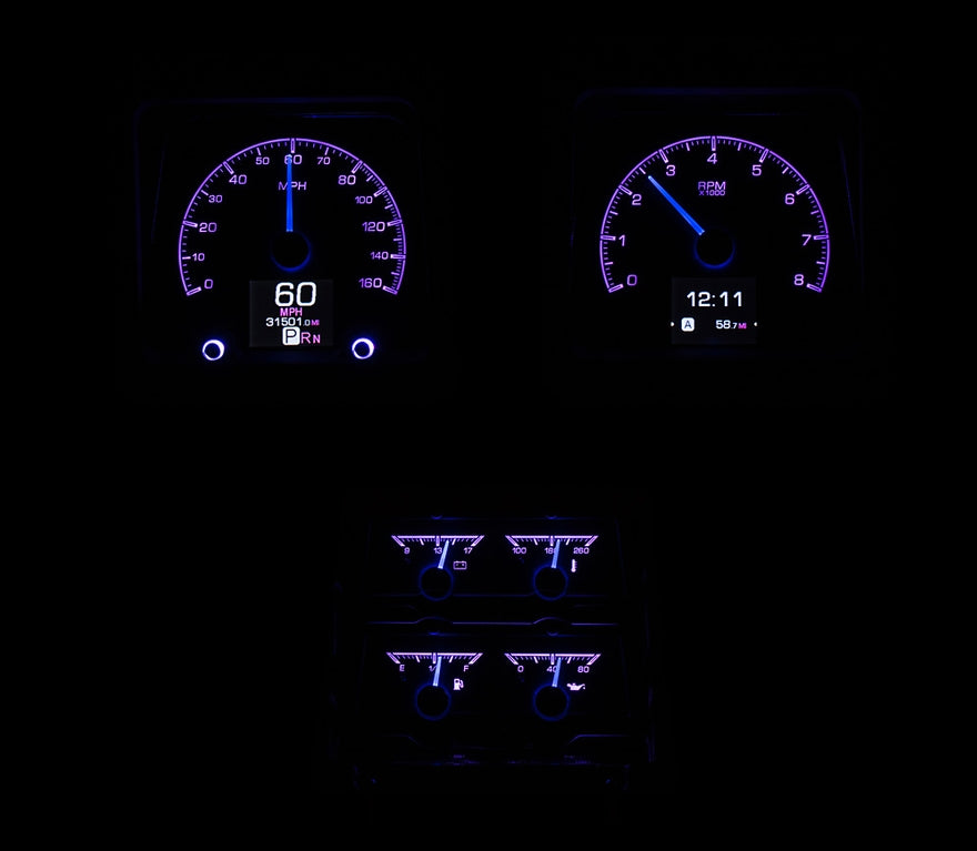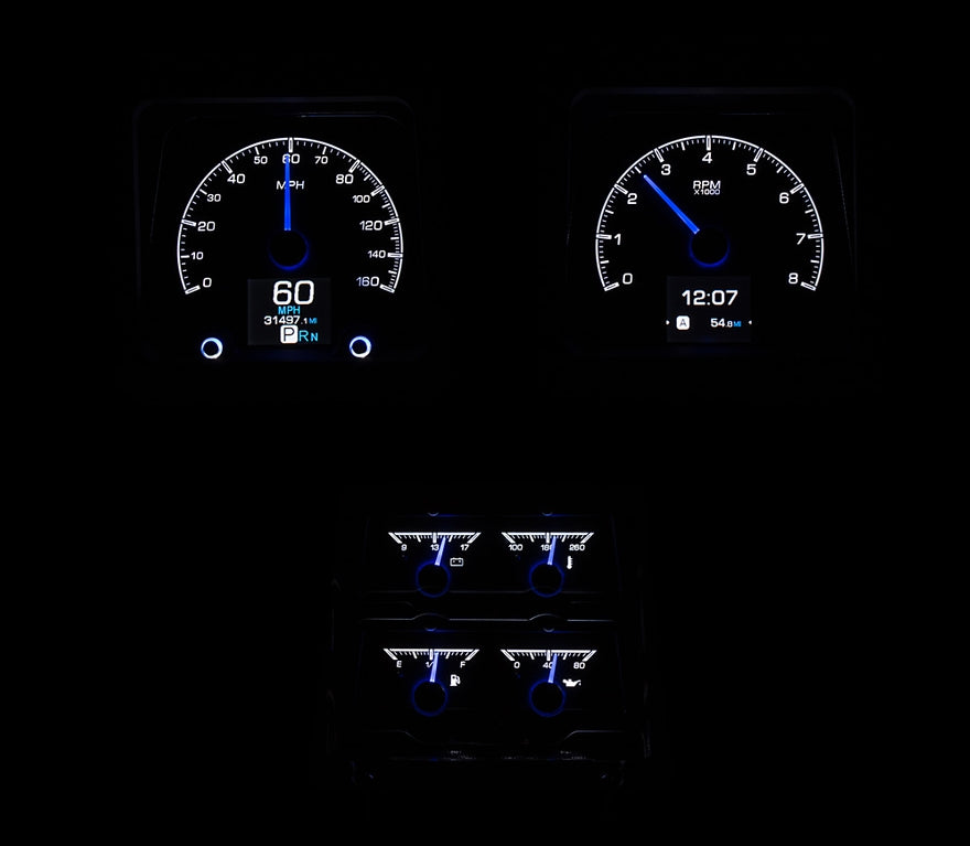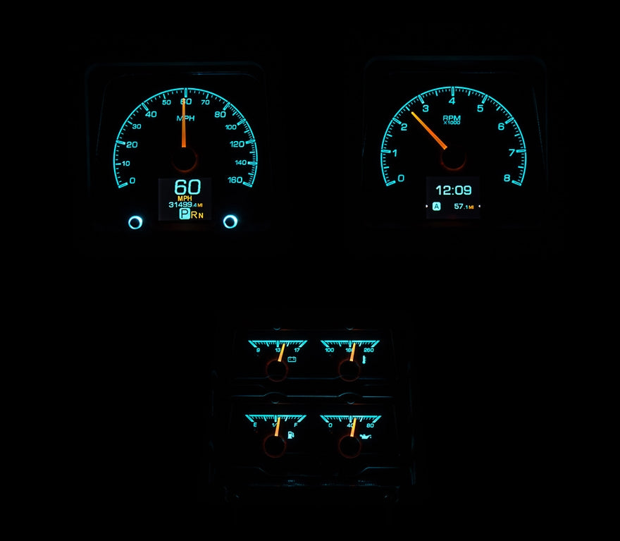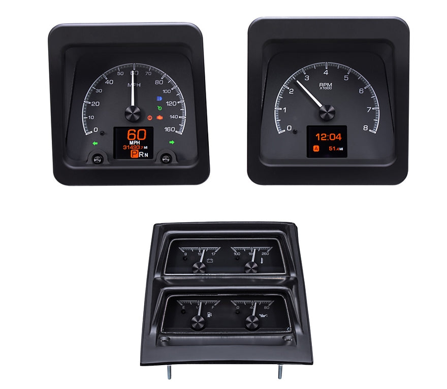 Upgrade your 1969 Carmaro with console gauges with Dakota Digital HDX gauges. Available in black or white face, these gauges offer customizable backlighting through a convenient app. Step up your interior game and enhance your driving experience with the latest technology and a sleek design. Free Shipping US 48 States. Fits original style bezel, but NOT included.