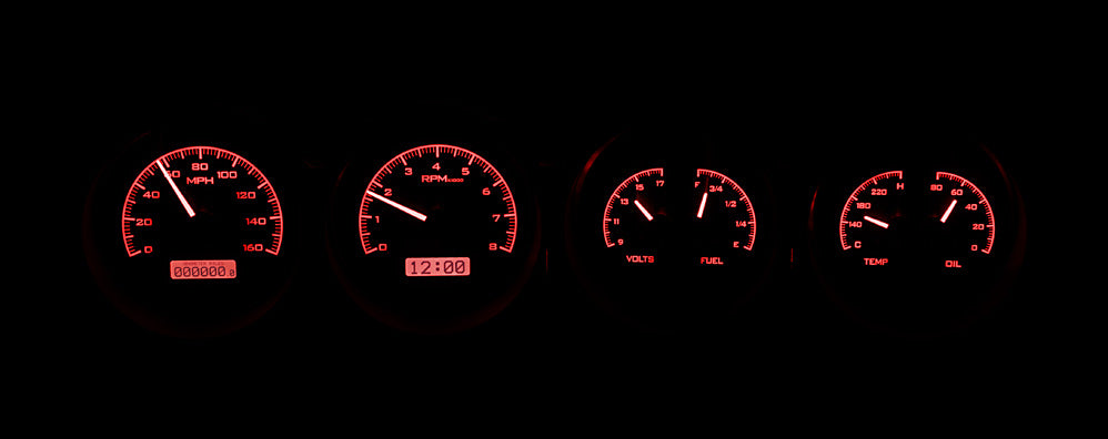 Dakota Digital gauges is known to be one of the best aftermarket gauges available. The VHX Series is an analog instruments that fits 1970-74 Charger/Barracuda with rallye dash. These gauges come with fully lit needles and backlit face with 6 gauges speedometer, tachometer, oil pressure, water temperature, gas level, and volt. Comes in 3 background colors silver, black, and carbon fiber, and comes in 3 light up colors red, blue, and white(carbon fiber with white lighting not available). The dash message display show odometer, dual trip meter ans also does performance meters like, 0-60 MPH timer, 1/4 mile time, 1/4 mile end speed, high speed recall, high RPM recall. Also includes water temperature sensor, oil pressure sensor, speed sensor, and control box. Instrument gauges will fit in OEM bezels but NOT INCLUDED. FREE Shipping within 48 Contiguous U.S. states. Volume discounts does not apply.