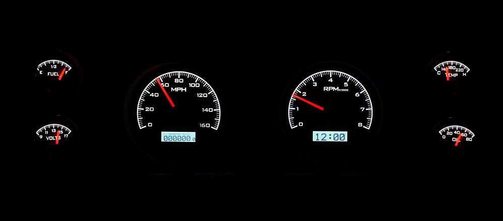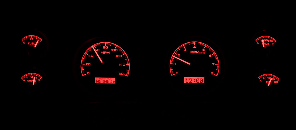 Dakota Digital gauges is known to be one of the best aftermarket gauges available. The VHX Series is an analog instruments that fits 1970-81 Firebird/Trans AM. These gauges come with fully lit needles and backlit face with 6 gauges speedometer, tachometer, oil pressure, water temperature, gas level, and volt. Comes in 3 background colors silver, black, and carbon fiber, and comes in 3 light up colors red, blue, and white(carbon fiber with white lighting not available). The dash message display show odometer, dual trip meter ans also does performance meters like, 0-60 MPH timer, 1/4 mile time, 1/4 mile end speed, high speed recall, high RPM recall. Also includes water temperature sensor, oil pressure sensor, speed sensor, and control box. Instrument gauges will fit in OEM bezels but NOT INCLUDED. FREE Shipping within 48 Contiguous U.S. states. Volume discounts does not apply.