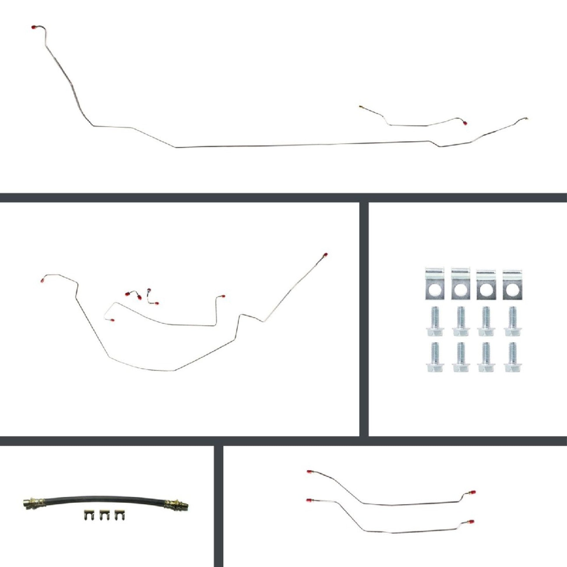 Complete pre bent disc brake conversion line kit for 1964-1967 Chevelle Convertible El Camino with power 4 wheel disc brakes. OE Material