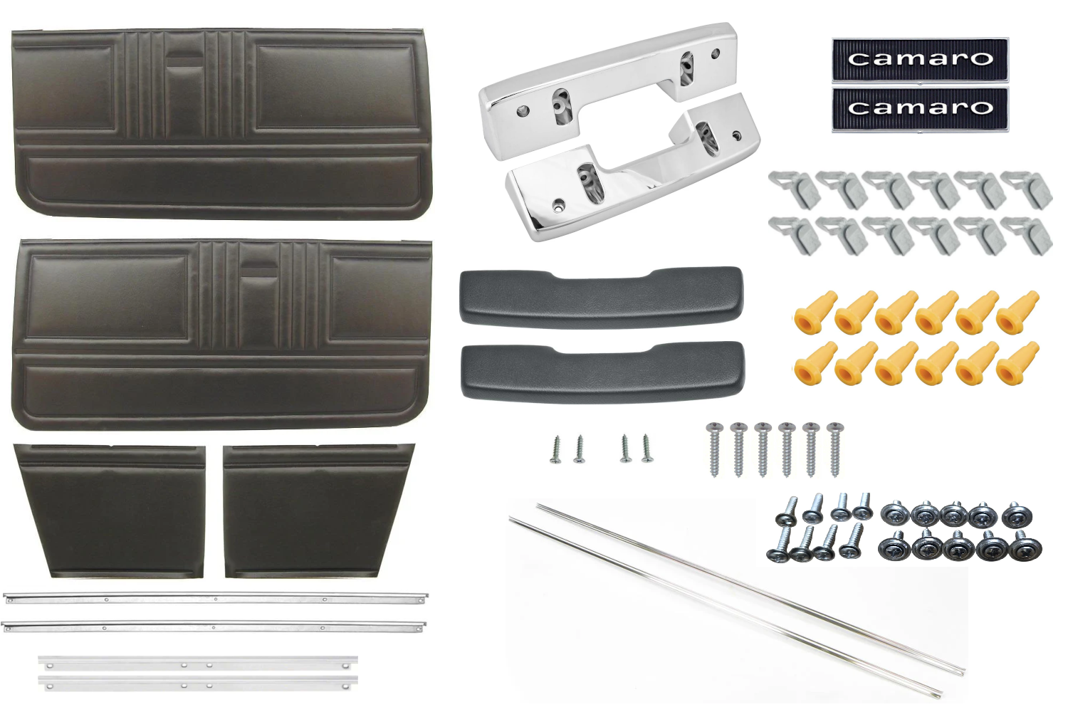 Unassembled door panel kit for 1967 Camaro Convertible with Standard interior in Black. Kit Includes