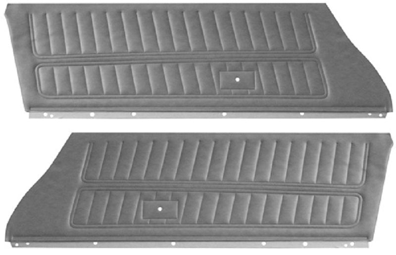 Reproduction unassembled standard door panels for 1977 Camaro. Manufactured with correct dielectrically heat sealed seams and stitch bar on Madrid grain vinyl.