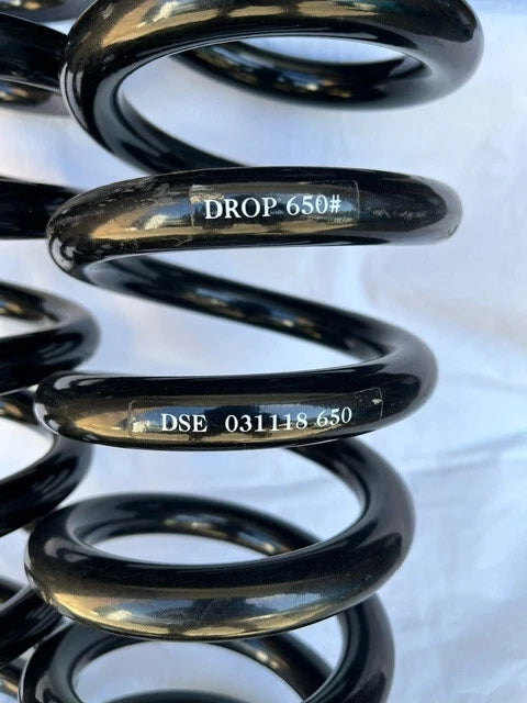 Used FRONT PAIR of Detroit Speed Big Block 2" drop coil springs part # 031118-650 in excellent shape as seen from the pictures. Springs were put on and tested but was taken off due to the need for more of a drop. FRONT PAIR OF SPRINGS are rated for a small block motor and will fit the 1967-69 Camaro Firebird, 1968-74 Nova and 1964-67 Chevelle El Camino