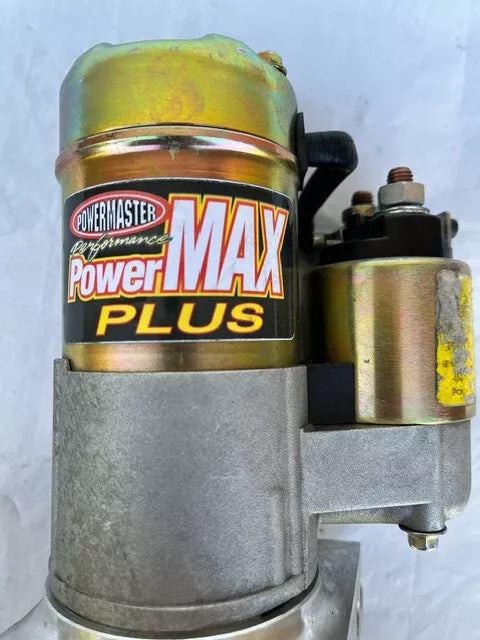 Used Powermaster Powermax Plus 9100 Mini Hitachi Starter in good conidtion for small block or big block Chevys with a 153 or 168 tooth flexplate. Starter does have a crack at one of the bolt holes as seen from the last 2 pictures. Item DOES NOT come with hardware, only item shown in picture, so you will need additional hardware to mount and to be fully functional.